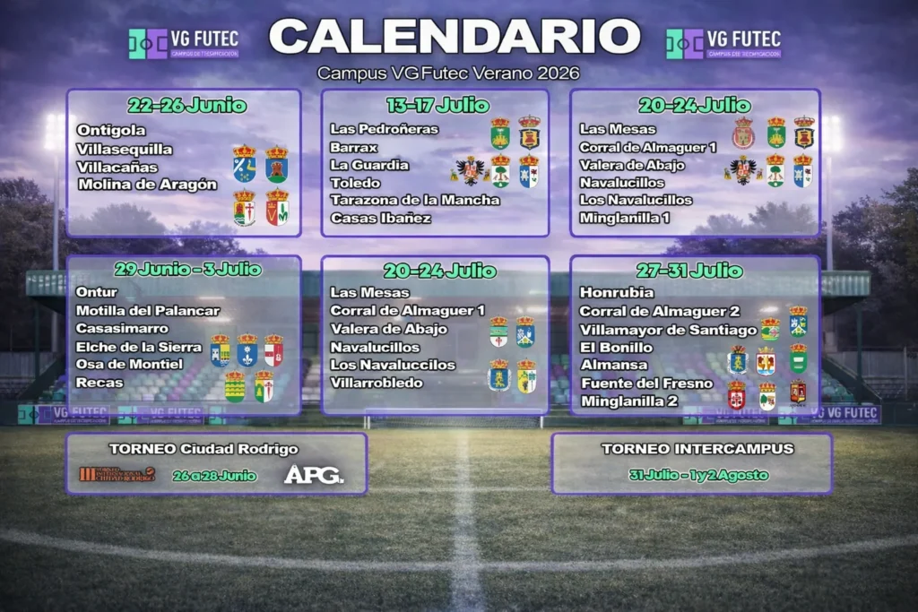 Disfruta además de la participación en el Torneo Intercampus VG FUTEC que el año pasado fue toda una fiesta, con las gradas llenas por momentos y con los participantes con mucha ilusión, ya que, para muchos, era el primer torneo de sus vidas. Este torneo, en el que solo pueden participar jugadores que hayan participado en los campus de tecnificación VG FUTEC, tuvo como sede a Corral de Almaguer, donde, además, todos los participantes tuvieron acceso gratuito a la piscina municipal, una de las mejores piscinas sin duda de Toledo.